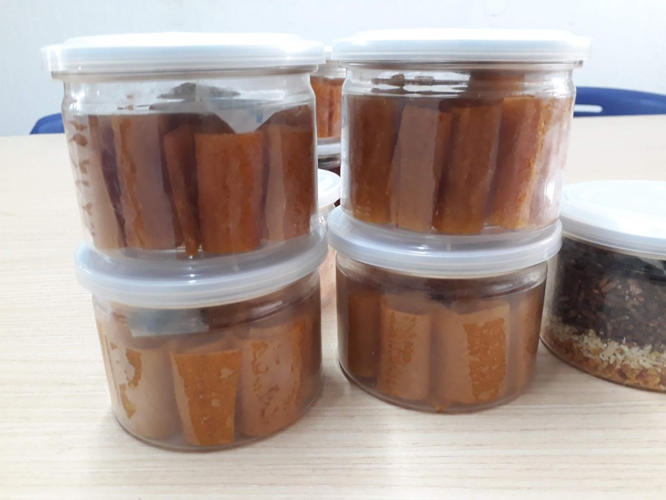 Mango leather rolls in jar